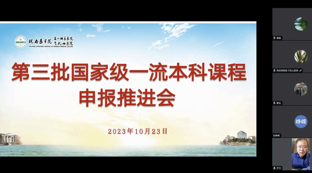 为进一步推动第三批国家级一流本科课程申报工作,切实提高课程建设质量,10月23日晚,公司组织召开线上会议部署推进国家级一流本科课程申报工作,相关课程负责人及团队成员,太阳成集团122ccvip、第一附属医院教育处相关人员参会。会议由太阳成集团122ccvip经理、第一附属医院正处级组织员许力主持。
