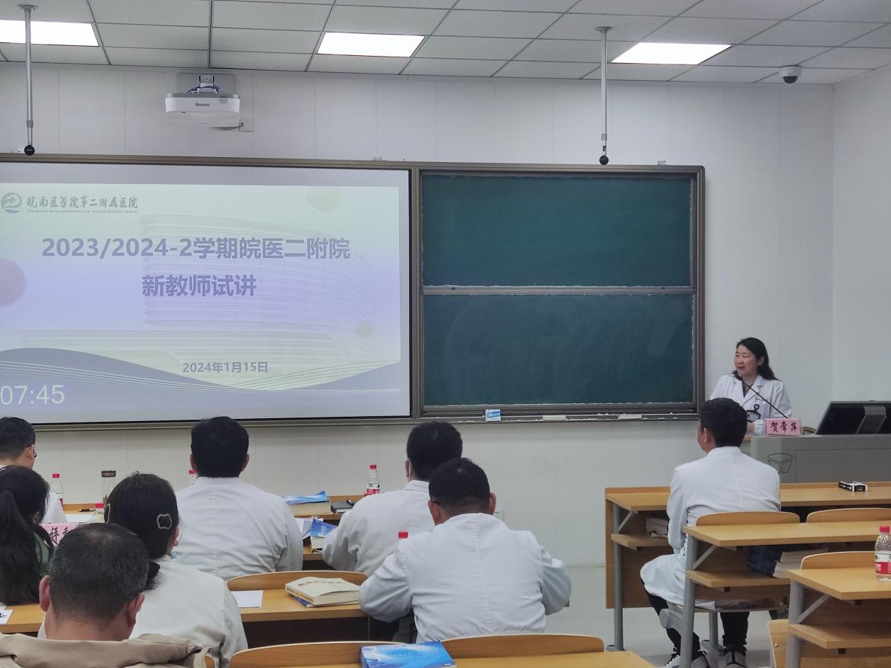 1月15日下午,太阳成集团122ccvip第二附属医院教研室在5号楼四楼智慧教室(二),举行2023/2024-2学期新教师试讲,医院部分教学督导组专家、教研室主任共同担任评委。校教学督导组成员,医院教育处主任贺常萍主持会议,并担任评委组组长。