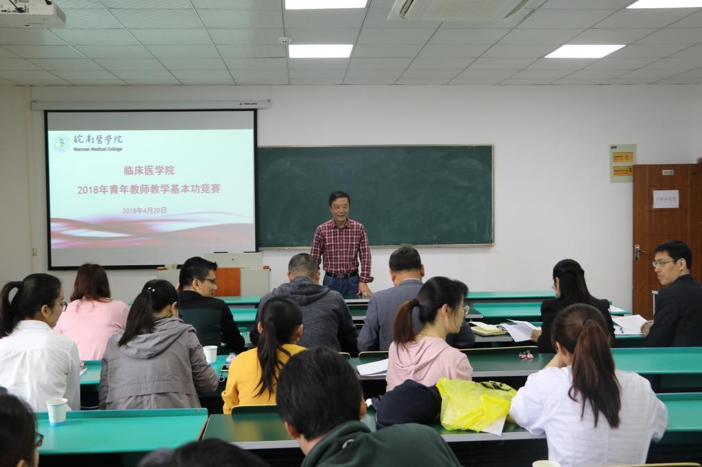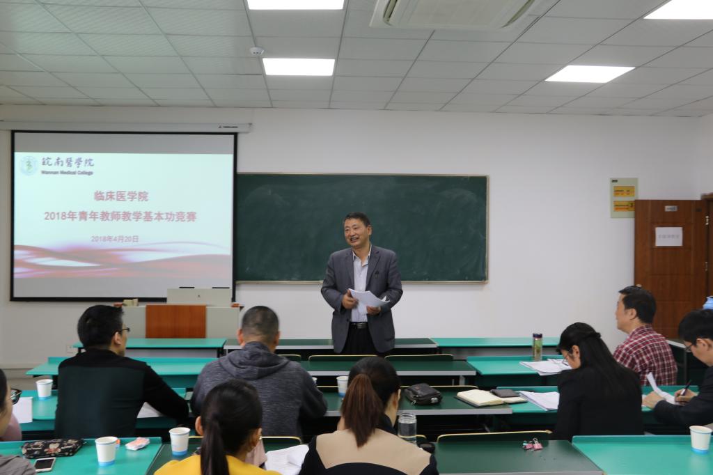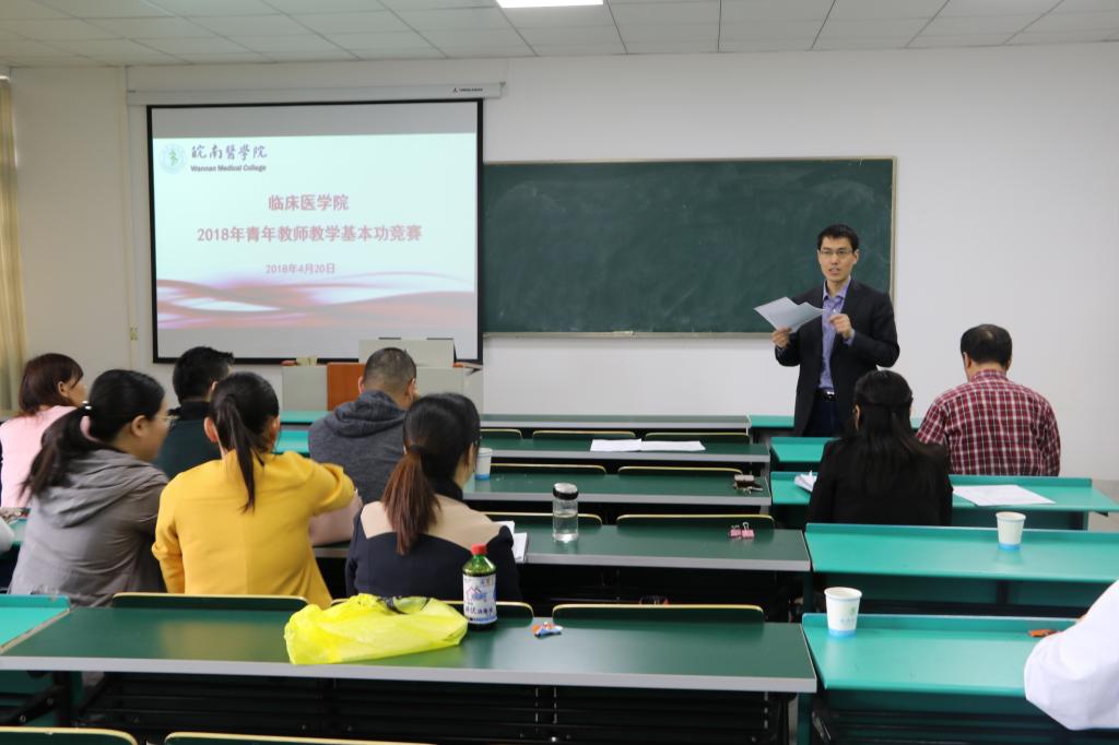 为提高青年教师教学能力,督促青年教师成长。4月20日,太阳成集团122ccvip在4号实验楼临床医学实验实训中心多媒体教室举办2018年青年教师教学基本功竞赛。比赛邀请校教学督导组张根葆教授及公司相关教师担任评委。公司党委书记刘群主持比赛。