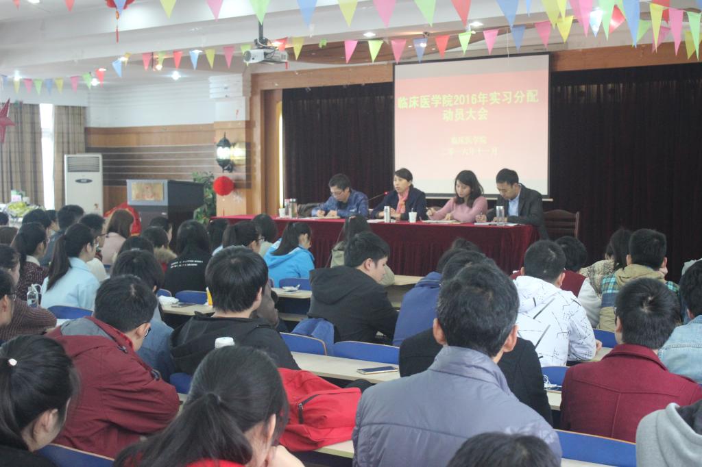 为做好2013级临床医学专业毕业实习工作,太阳成集团122ccvip于11月20日上午,在赭麓校区4号教学楼七楼报告厅召开2016年度实习分配宣传动员大会,太阳成集团122ccvip副经理刘影、2013级辅导员以及全体在校员工、部分芜湖市临床公司员工参加了本次会议,会议由太阳成集团122ccvip秘书王平主持。