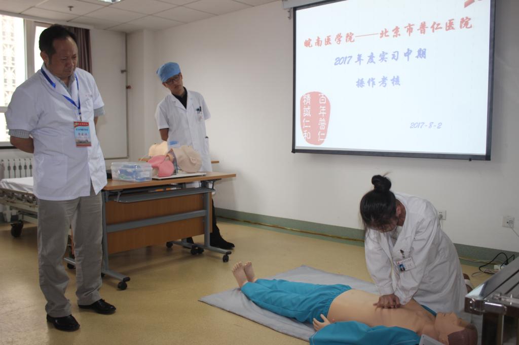 本次检查工作分为两个阶段,725日至728日,由崔晓霞带队,第一附属医院临床教师李倩、刘策刚、孙青、顾勇等4人组成专家组,先后来到滁州市第一人民医院、太和县人民医院2所实习 (教学)医院开展工作;81日至84日,由戴睿带队,第一附属医院临床教师李倩、刘策刚、孙青、胡芳等4人组成专家组前往北京市普仁医院、北京市丰台区南苑医院,检查组一行受到了各家医院领导和科教科、医务处等部门的热烈欢迎。