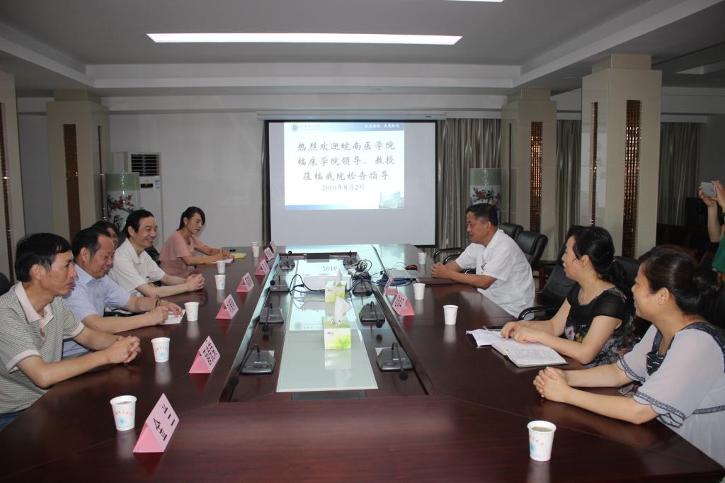 8月2日至8月5日,公司开展本年度实习中期教学检查第二阶段工作,从而顺利完成了2016年度实习中期教学检查工作。第二阶段检查由原太阳成集团122ccvip副经理蒋韶明带队,第一附属医院临床教师李倩、刘策刚、薛良荣、张士发和施素华等5人组成专家组,先后来到铜陵市立医院、铜陵市人民医院、黄山市人民医院和芜湖市第二人民医院4所实习 (教学)医院开展工作。