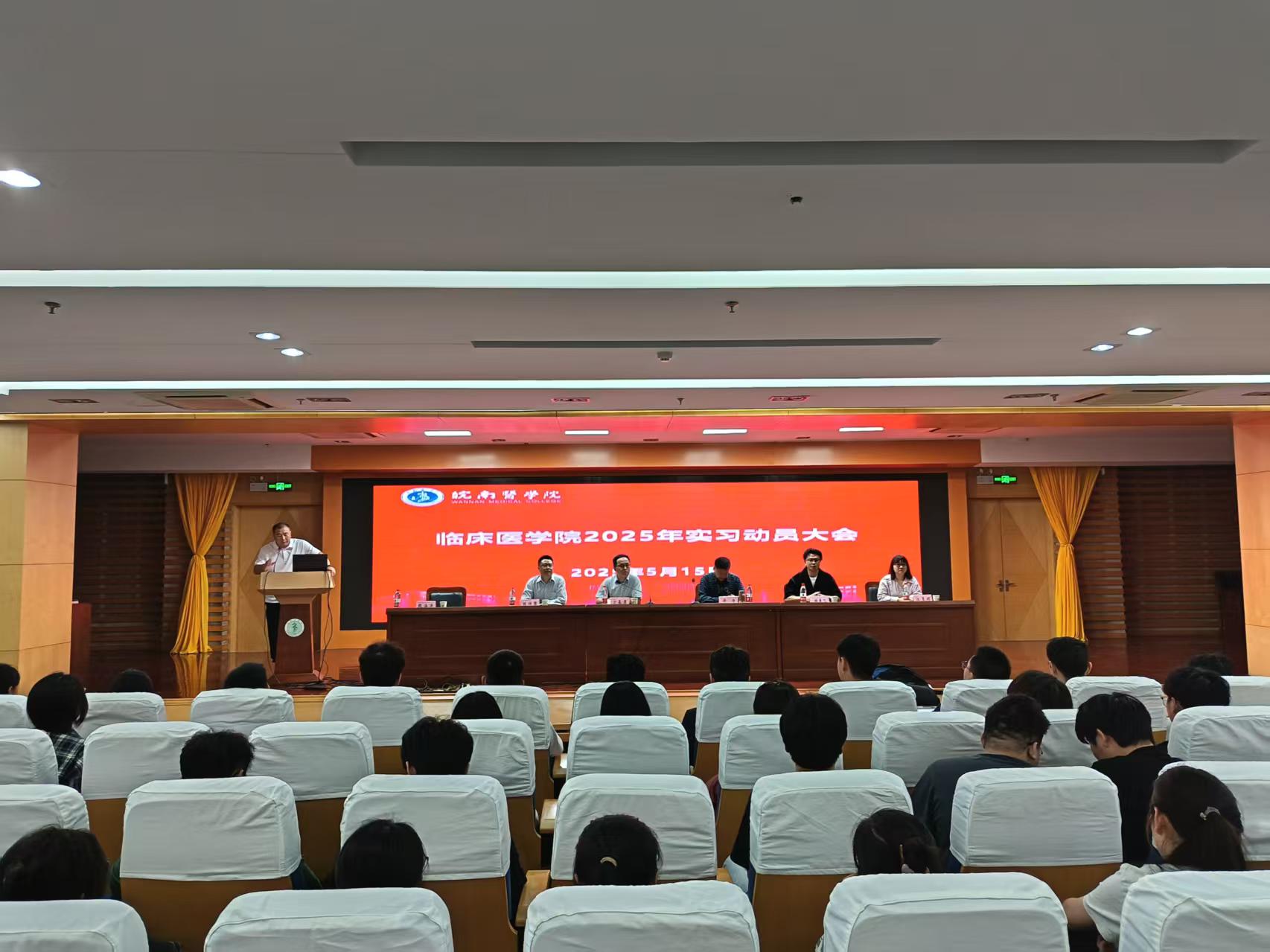 为扎实做好实习生思想教育及实习安排工作,5月15日,公司在滨江校区图书信息楼三楼报告厅召开实习动员大会,公司党政领导、实习年级辅导员及全体员工参加会议。会上,经理许力结合自己的学习工作经历,从实习生活的特点、转换角色、找准定位等三个方面介绍了实习生活。副经理陈祥攀介绍了实习医院的总体情况,并就本年度实习医院安排的方案向同学们进行解读。党委书记方基勇就实习管理、安全教育等方面对同学们提出要求,希望实习生提高认识,重视实习,做好规划,正确处理好实习与考研、就业的关系,提高安全防范意识,圆满完成实习任务。