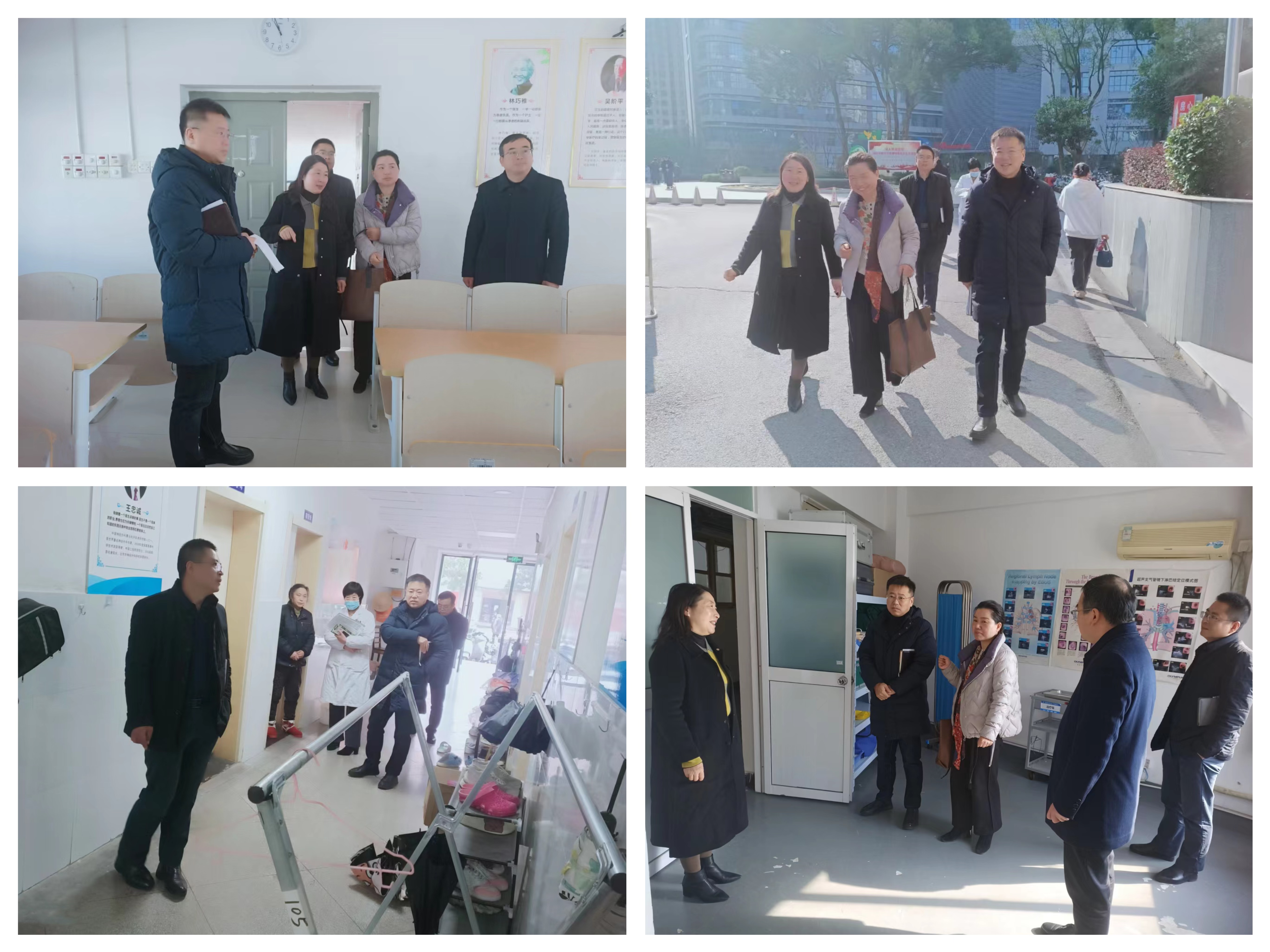 会后,黄月娥、许力一行实地查看了教室及智慧教学情况、员工宿舍及临床技能中心改造情况。