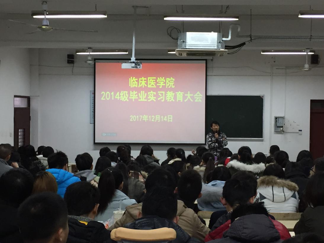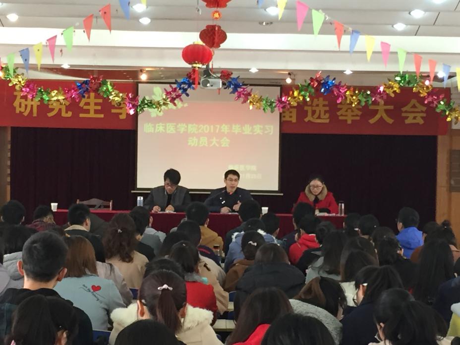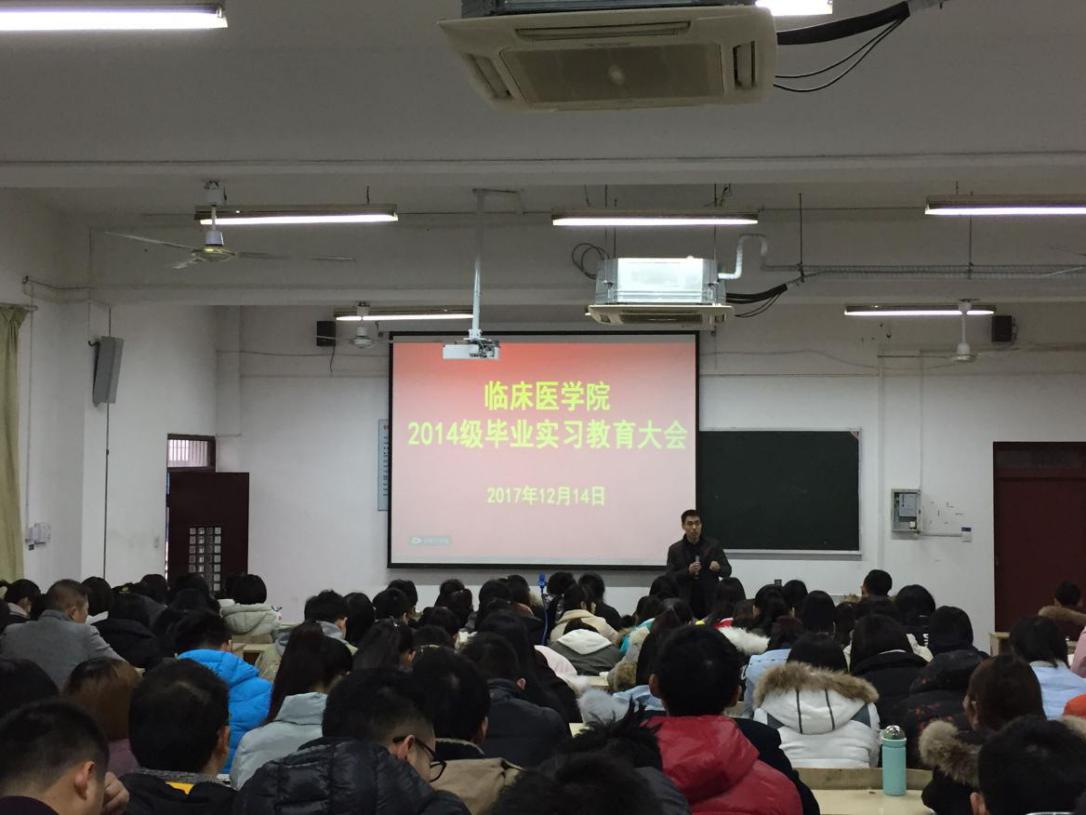 11月 26日-12月4日,公司精心组织,扎实推进,依次完成了员工实习志愿填报、志愿收集、志愿分配等各项工作。为了帮助员工更好地明确实习目标、确定奋斗方向、助力员工成长,公司于12月17日在赭麓校区召开毕业实习教育大会。会上,副经理李曙首先结合自己的实习和从教经历,向同学们强调了实习过程中要做好三个转变、注意四个安全、处理好若干关系,要求同学们要明确定位、提高段位、提升品位。随后,王平就毕业实习大纲、实习鉴定、科室轮转、实习月报表等事项重申实习具体任务和劳动纪律。最后,2017年全国临床技能大赛获奖选手叶世菲结合自己的参赛心路历程以及考研经历,与同学们进行了经验交流。