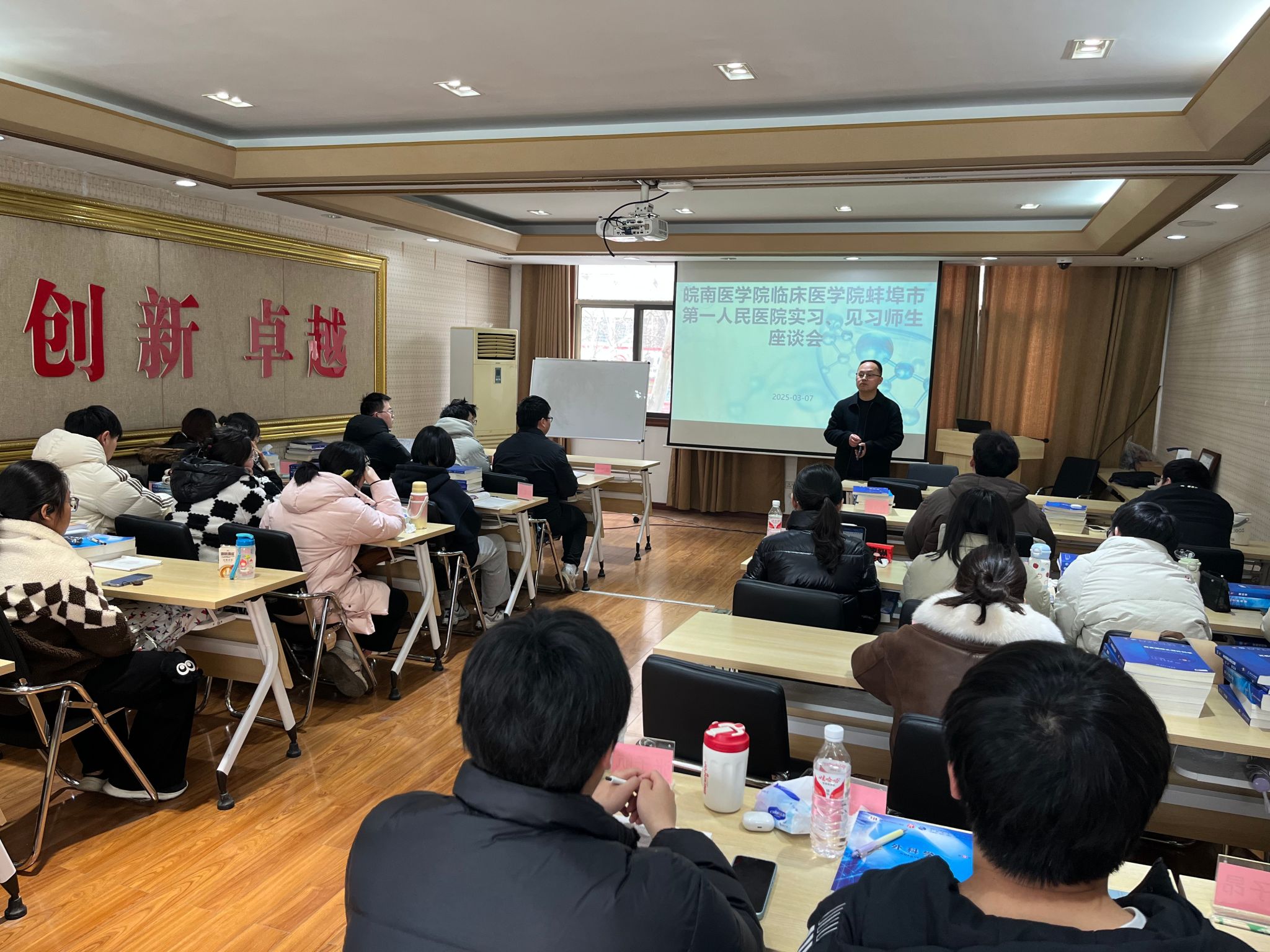 在蚌埠市第一人民医院,双方举行了座谈会,蚌埠市第一人民党委书记袁长江、经理张旭、执行经理余红、各教研室主任、科教处人员等参加。袁长江对方基勇一行的到来表示热烈欢迎,介绍了医院的发展情况。方基勇介绍了公司高水平医科大学建设、本科公司产品审核评估等重点工作和公司近年来在临床医学国家级一流本科专业建设、团队队伍建设、实验实训中心建设、人才培养质量提升等方面取得的成果,听取了医院关于课堂教学改革、教学督导、团队培训、教学管理等方面的汇报,倾听了临床教师对公司教学管理、员工管理、专业建设等方面的建议,实地查阅了教学档案材料,深入课堂、食堂、寝室召开员工座谈会,详细了解员工学习和生活情况。