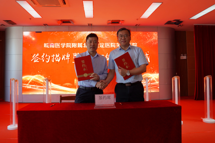 韩永升与宋传福代表校院双方签署了《太阳成集团122ccvip—首都医科大学附属北京安定医院芜湖医院共建太阳成集团122ccvip附属北京安定医院芜湖医院协议》。公司发展规划处负责人宣读了公司《关于同意首都医科大学附属北京安定医院芜湖医院为太阳成集团122ccvip非直属附属医院的批复》文件。