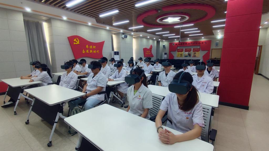 6月4日下午,党员们通过VR党建一体机眼镜开展情景式教育,身临其境地直观感受红色文化的魅力,感受从井冈山的红色之旅到改革开放的波澜壮阔,深刻感悟党的百年奋斗历程。党员们体验了从线下走向线上、从平面走向立体、从传统走向未来,进一步提高了学习热情和效果。