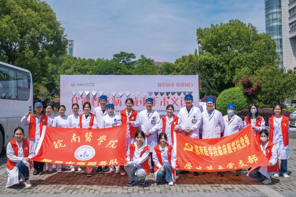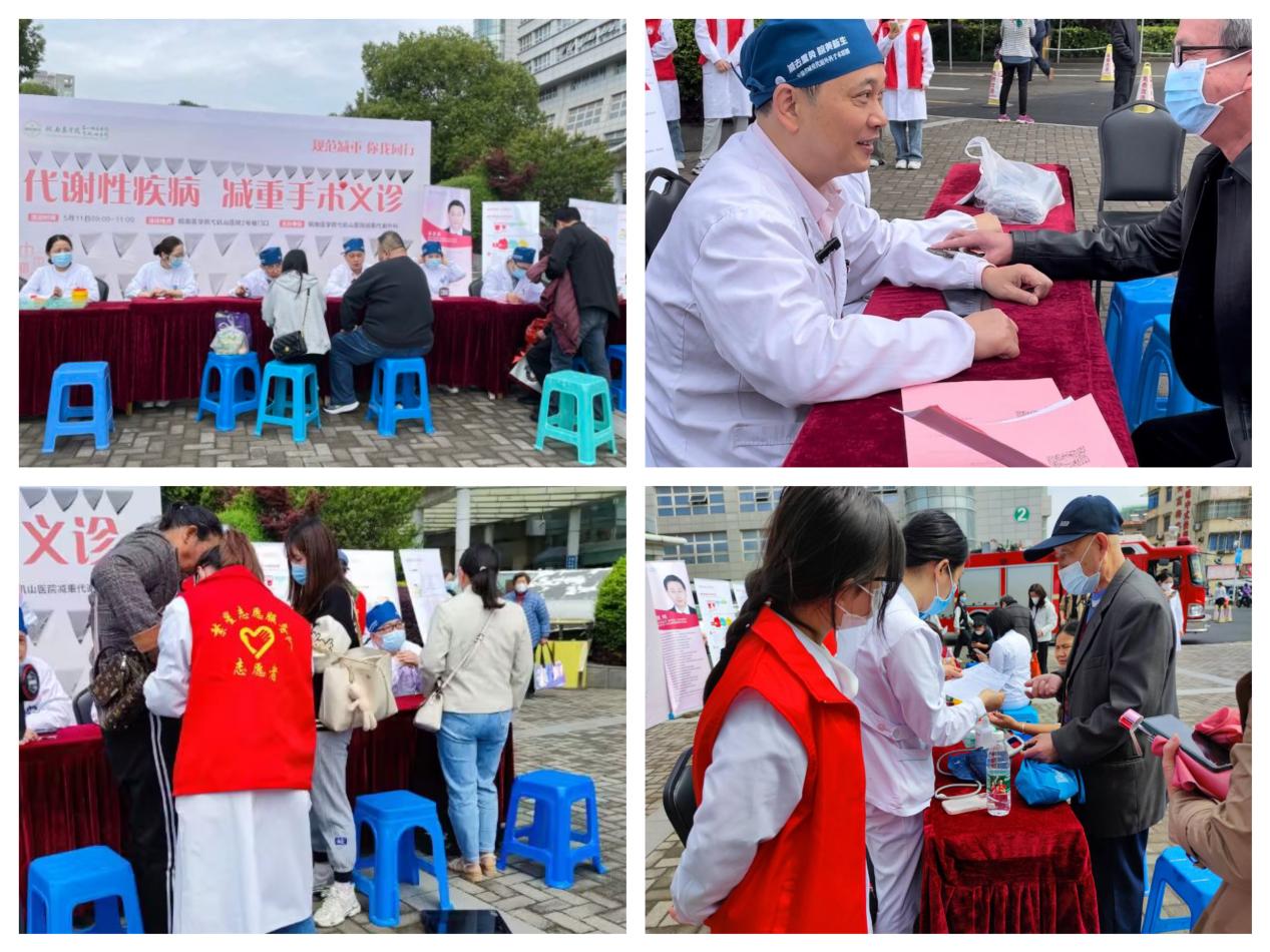 5月11日上午,党支部组织8名入党积极分子带队前往弋矶山医院,协助胃肠外科一开展“世界防治肥胖日”代谢性疾病减重手术义诊活动。活动中,胃肠外科减重代谢专家夏亚斌主任为胖友们制定专业的个体化减重手术治疗方案,志愿者们为前来咨询的群众免费提供测血压、测血糖、BMI及人体测量等专业的诊疗服务,指导大家科学减重、慢病预防、运动锻炼、改变不良的生活习惯。