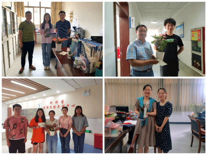 9月10日,员工会同学们带着手写的祝福贺卡和精心挑选的绿植,来到部分教研室和相关部门,为教师们送上美好的祝福,表达自己对老师深深的感恩之情。收到祝福后,老师与同学亲切交谈,并叮嘱同学们作为一名医员工,不忘医员工誓言,扎实学习理论知识,提高身体素质,用青春书写无愧于时代的华彩篇章。