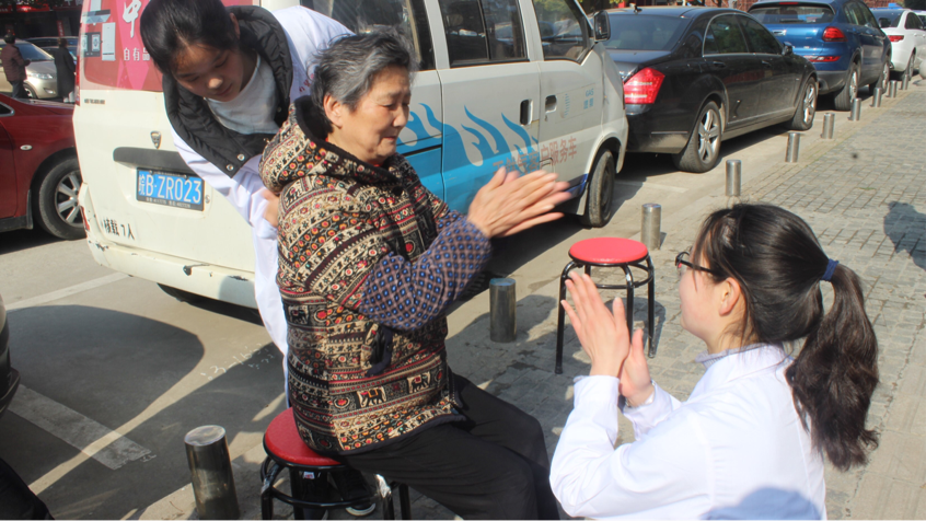 阳光和煦,微风轻柔,3月10日早8点,志愿者们或走进社区,摆开桌椅,拉起横幅,不急不躁认真细致地为社区居民测量血压,期间不乏志愿者们亲切的问候与关怀;或走上街道,积极分发传单,认真介绍春季流行疾病防控知识,指导人们做好预防措施,热心提醒社区人员注意合理饮食,并引导他们前往志愿服务台测量血压,关注身体健康状况;或耐心仔细地教老人们十式手部健康操,为其进行按摩解乏,并结合所学知识对老人提出的常见健康问题做出针对性解答,幸福的微笑洋溢在老人的脸庞。点滴活动,汇聚成集,丝丝奉献,传承千里,志愿者们以其饱满的热情与严谨的工作态度赢得了广大南街社区居民的夸赞与认可。