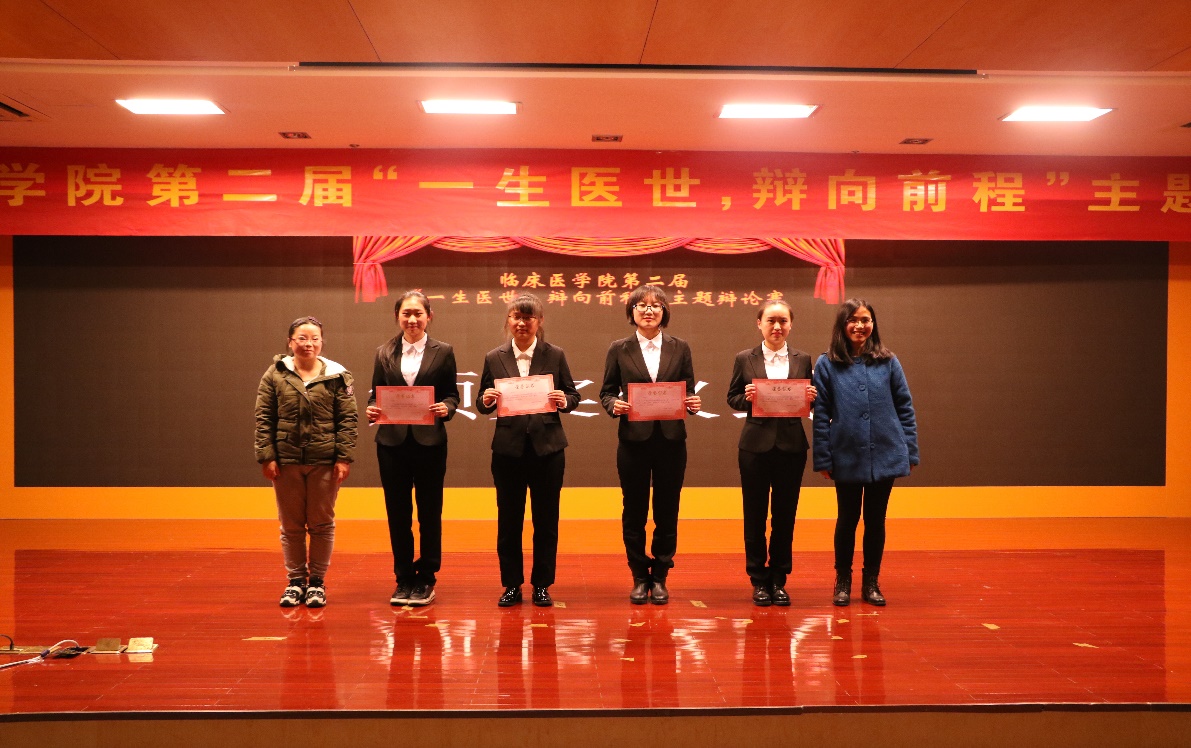经过初赛、半决赛的激烈争夺,2支队伍脱颖而出进入冠亚军争夺战,另有两支优秀队伍进行表演赛。此次大赛分别围绕“医术更重要,还是医德更重要”和“医公司校应不应该增设人文类课程”两个辩题展开了激烈的辩论。比赛共分为“开篇立论”、“攻辩阶段”,“自由辩论”和“总结陈词”四个环节进行。比赛伊始,双方在立论方面或引经据典,或旁征博引,主题鲜明,条理清晰。攻辩与自由辩论环节,一言一语是思想上激烈的碰撞,一分一秒皆团队间合作的争取。赛场上无形的硝烟,碰撞出思想的火花。激烈的交锋与犀利的话语赢得现场观众阵阵掌声,将比赛的氛围一次又一次地推向高潮。总结陈词环节中更是将选手灵活的思维、缜密的逻辑推理展现得淋漓尽致。两组比赛间隙更是有乐器表演,宛转悠扬犹如天籁之音,令人沉醉。在评委点评环节,赵敏奇、杜勇飞老师分别对辩论赛进行了深刻透彻的点评,让辩手们受益匪浅,也赢得了观众们热烈的掌声。最终来自2017级的无与伦比队凭借丰富的知识底蕴、良好的心理素质以及运用自如的辩论技巧勇夺桂冠。2016级的应泽生、叶冠峰分别获得最佳辩手和优秀辩手称号。