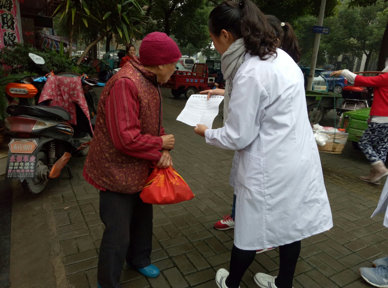 19日上午7:30,志愿者们身着白大褂在公司南大门集合准备出发。参与活动的志愿者多达30人,志愿队伍浩浩荡荡,精神饱满,尽显公司学子积极向上的精神风貌。到达社区后,志愿者们与社区负责人进一步沟通,布置现场、检查测量仪器等各项准备工作有条不紊地进行。9:00,志愿服务活动准时开始,本次活动内容包括健康宣传、测量血压、清洁家园等三个方面。部分志愿者走进社区发放季节性疾病预防宣传单,向居民详细介绍秋季疾病相关防治知识,并宣传引导居民前往志愿服务台免费测量血压,关注身体健康状况。在志愿者们的积极行动下,即使是阴雨蒙蒙的天气,前去志愿服务台的居民仍然越来越多。对于居民们的血压健康情况及所问到的常见健康问题,志愿者们结合所学知识悉心为他们答疑解惑,针对日常饮食等生活习惯也给出相关意见。与此同时,为助小区居民生活环境整洁美化,志愿者们手持扫帚,分头行动,对小区公共区域进行了清扫。志愿者热情负责的工作态度赢得了社区居民们的信任与赞扬,居民们表示希望多多开展此类有意义的活动。