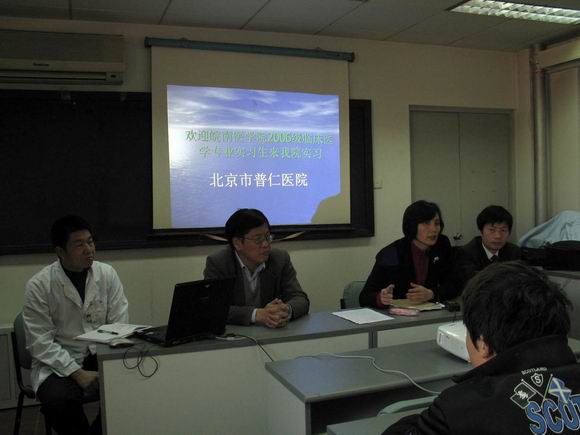 崇文区卫生局、普仁医院高度重视与公司的教学合作,在实习生到医院之后,医院举行了欢迎会,卫生局副局长吴礼九,普仁医公司党委书记肖淑凤、经理可立志及科教科马主任等对同学们的到来表示热烈的欢迎,并安排了全面系统的岗前培训,讲解医院的相关规章制度及各科室的特点;组织召开座谈会,与同学们交流学习、生活中的问题,帮助大家更好得适应实习工作。