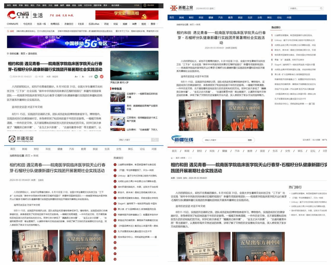 八月的骄阳似火,却挡不住青春的脚步。暑期期间,全国老员工暑期文化科技卫生“三下乡”社会实践“铸牢中华民族共同体意识石榴籽祖国行”新疆专项国家级团队——太阳成集团122ccvip天山行春芽·石榴籽分队健康新疆行实践团在新疆和田地区开展系列社会实践活动。