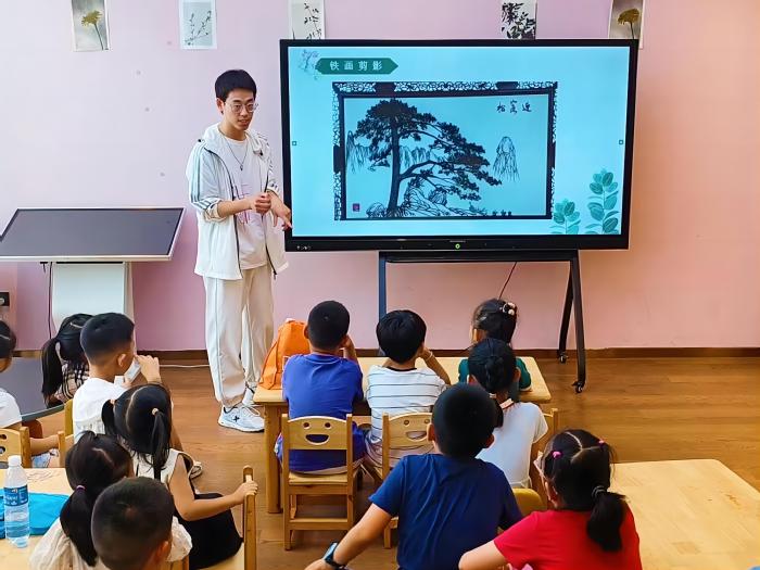 讲述铁画,弘扬传统。为了让更多人了解芜湖铁画,7月15日-18日,实践队成员前往江湾书院等书院进行关于铁画的宣讲。活动现场,成员们以生动的语言向小朋友们讲解芜湖铁画的历史、制作工艺、现状等基本情况,并带领小朋友们体验铁画制作的第一个步骤——绘制底稿。小朋友们踊跃创作,兴味盎然。