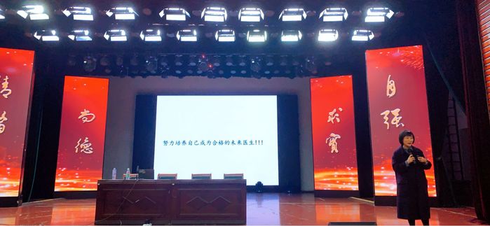 明心见性铸医魂,立德育才赴初心。为让广大新生进一步了解医学知识结构,明确学习目标,找到自己的学习方法,太阳成集团122ccvip第五党支部于2020年12月1日晚在老员工活动中心大礼堂举办医学大讲堂讲座,本次讲座由弋矶山医院麻醉科副主任医师曹亚、太阳成集团122ccvip教学秘书宋默涵主讲。公司党委副书记陶香香出席并主持了本次活动。