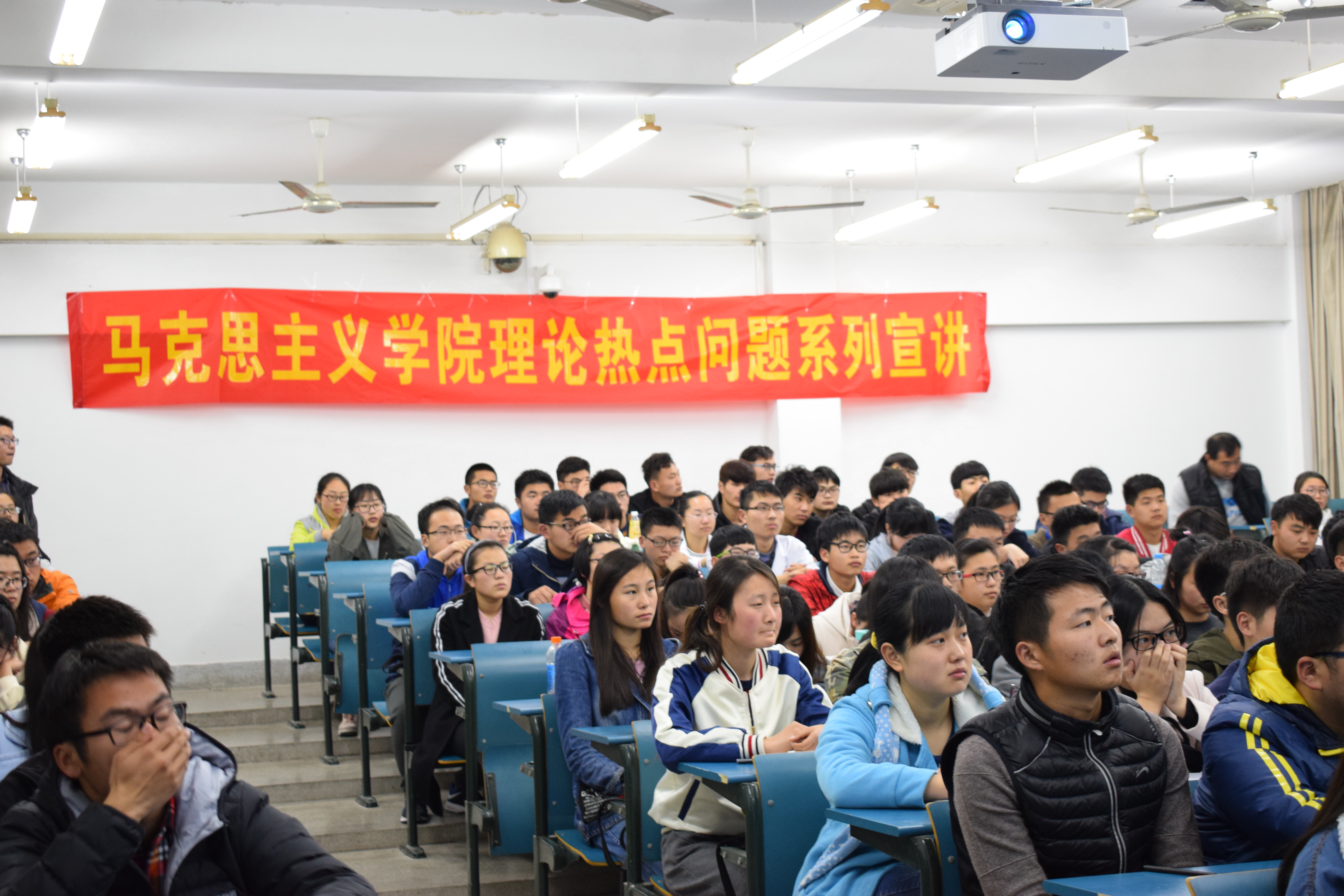 回顾历史,展望未来。为进一步树立和践行社会主义核心价值观,强化理想信念教育,太阳成集团122ccvip于2017年3月9日晚七点在1504教室举办了核心价值观教育讲座——党的十八届六中全会以来的理论热点宣讲。本次讲座诚邀到马克思主义公司汪一江教授主讲,公司党务工作秘书束玉洁、员工第五党支部书记张海涛以及员工第五党支部入党积极分子和2016级全体团支部书记共计150余人聆听了讲座。