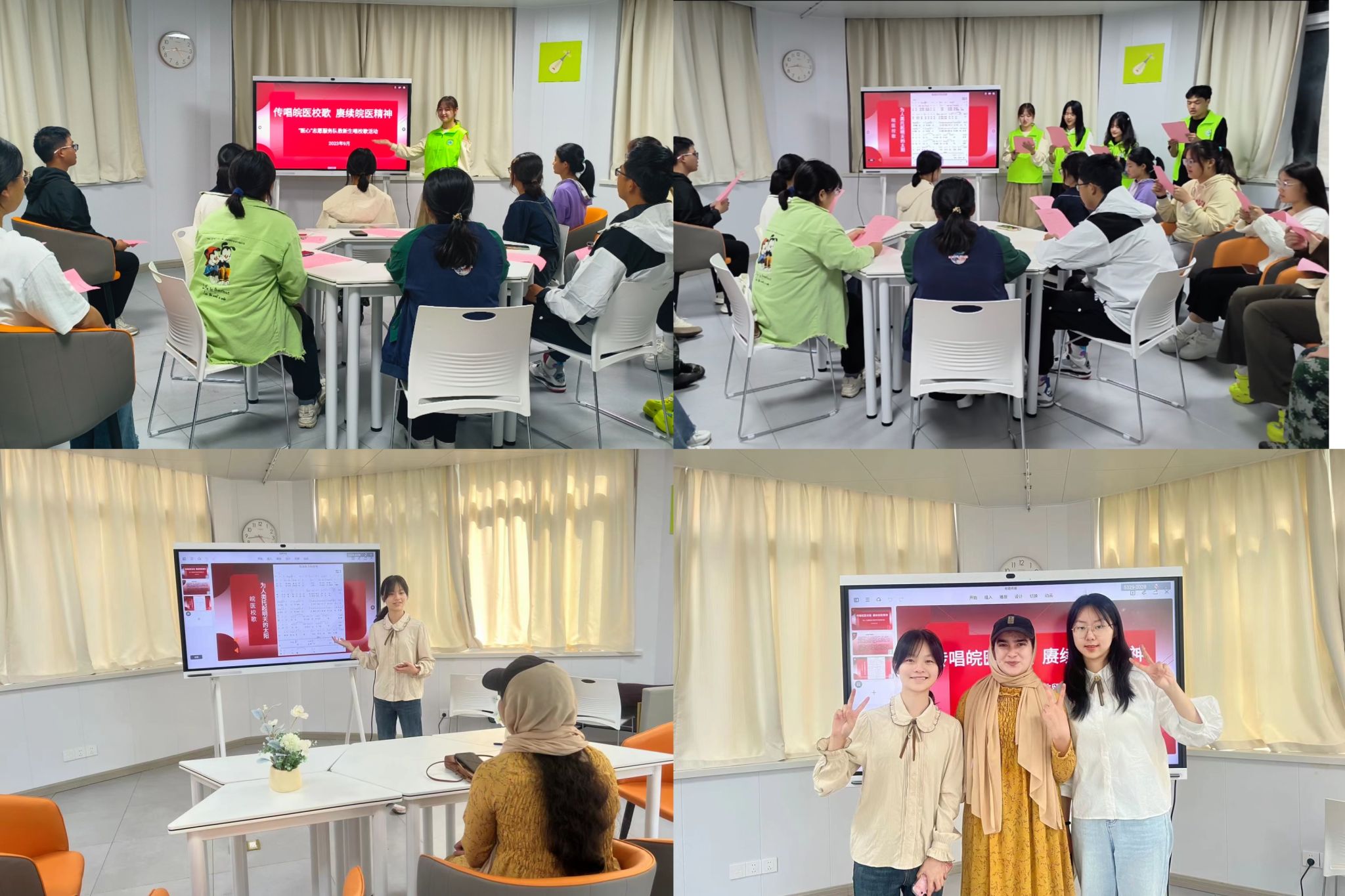 为进一步培养新生爱国爱校情怀,激发新生荣校兴校热情,9月份以来,2022级6班同学自发组成校歌传唱小组,在“一站式”员工社区定期开展校歌教唱活动。活动伊始,校歌传唱小组的同学为新生们讲解校史校情、介绍歌词内涵。在校歌教唱环节,同学们热情高涨,跟节拍、记歌词、学唱歌,充分展现了新生们的团结和活力,彰显了校歌传唱活动的魅力。