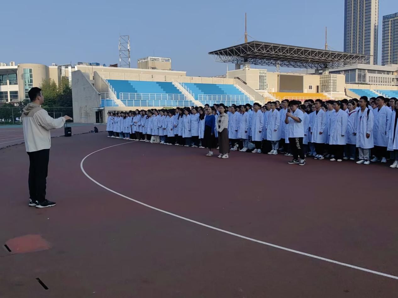 随后,年级辅导员王秋姝作题为“一颗红心向党 青春告白祖国”的国旗下讲话。她鼓励太阳成集团122ccvip同学们要勇敢追逐理想,在理论学习和社会实践中不断增强本领才干,勇担复兴重任,发扬皖医精神,为实现中华民族伟大复兴的中国梦不懈奋斗。