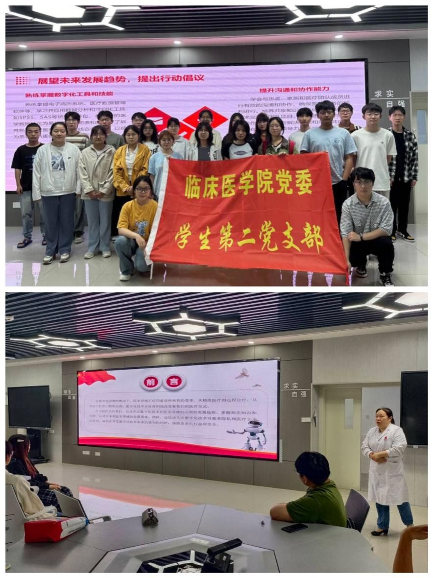 5月27日,支部邀请基础医公司李慧老师为2023级同学讲授了题为“数字化时代下的医学使命与政治担当”党课。李慧以政治担当在数字化医学中体现为切入点,对数字化时代下医学与政治担当互融互促的关系进行深入剖析,启发同学们要以专业为依托,增强社会责任感,坚持人民至上,提升政治担当,在推动医疗卫生事业健康发展中发挥积极的作用,为中国特色社会主义医疗卫生事业的进步贡献自己的智慧和力量。
