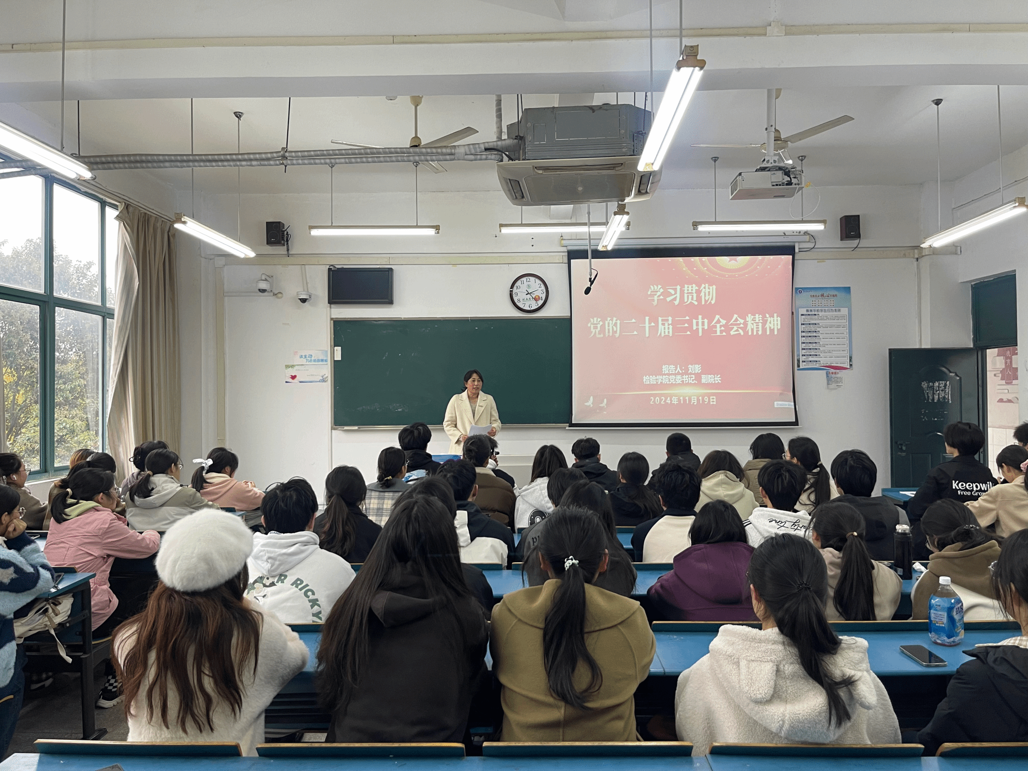 匠心润桃李,凝聚奋进力量。11月19日,支部邀请班主任代表刘影老师为入党积极分子作题为《学习贯彻党的二十届三中全会精神》的宣讲。刘影聚焦进一步全面深化改革的总目标及其重大原则,深入浅出地介绍了习近平总书记关于全面深化改革的一系列新思想、新观点、新论断,向同学们深刻解读和系统阐释了全会精神。同时,她鼓励入党积极分子应带头学习领会党的二十届三中全会精神,培养严谨的科学态度和扎实的专业素养,紧密结合专业实际,将个人理想融入国家发展大局,努力成为具有创新精神和实践能力的高素质人才。