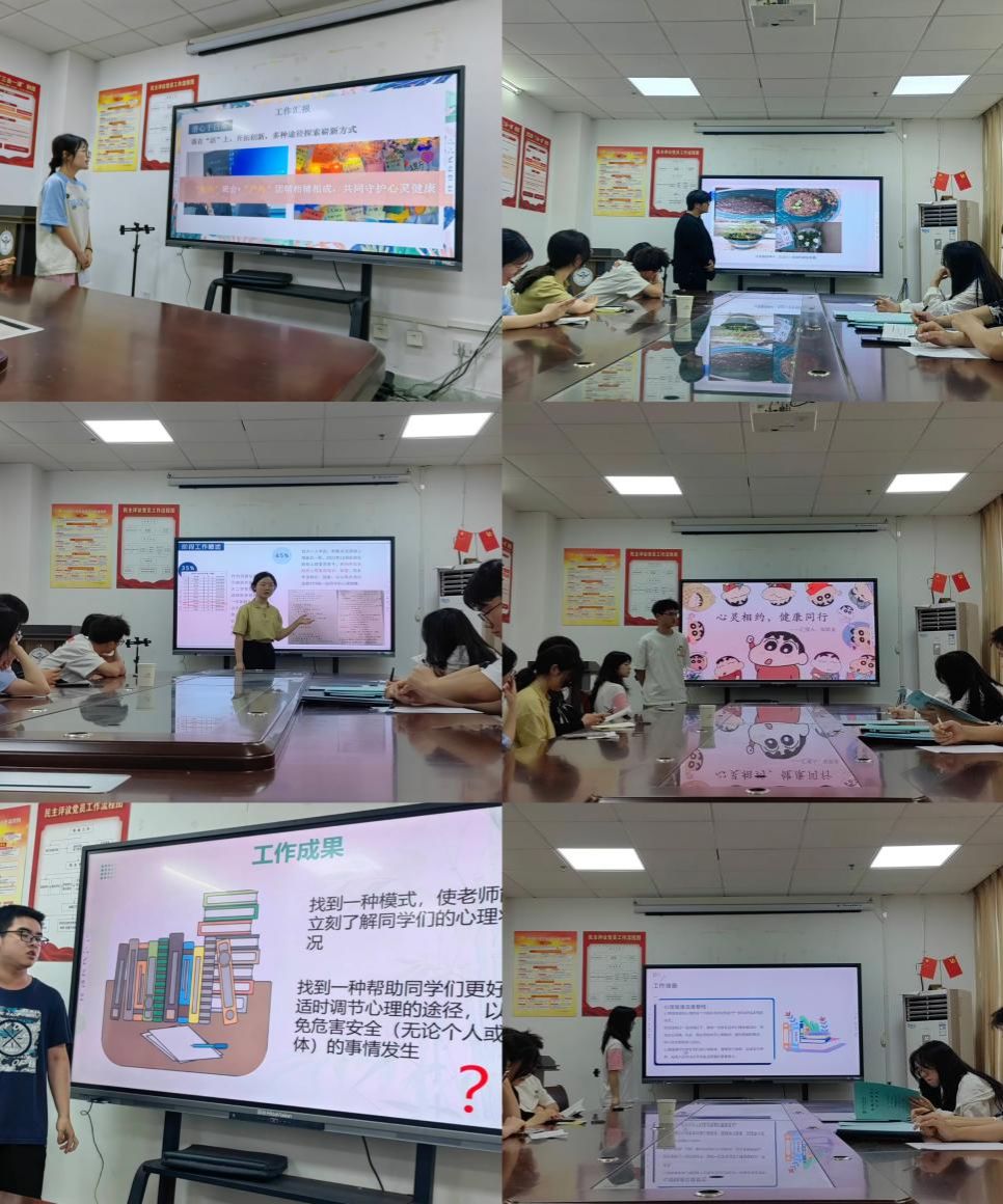 为加强心理委员队伍建设,激励和培养更多优秀的心理委员,5月26日,年级开展了“心理委员分享会”活动,年级辅导员和班级心理委员参加。年级6名心理委员通过PPT展示的形式,围绕工作内容、工作总结和未来展望等方面,分享了他们在心理健康教育、心理援助、心理活动组织等方面的经验和成果。