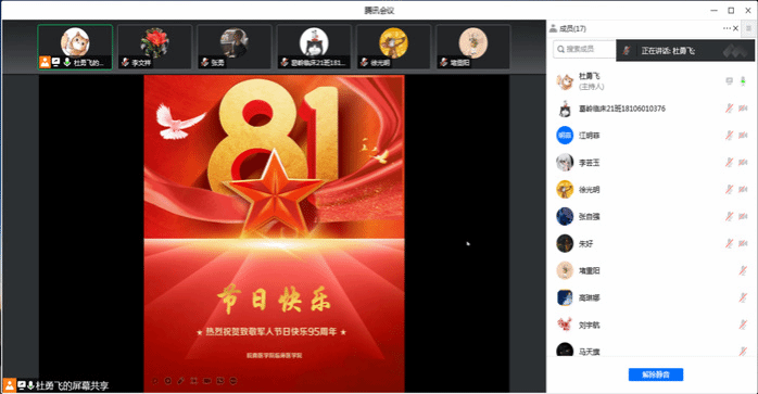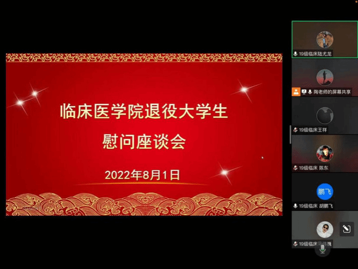 为庆祝中国人民解放军建军95周年,8月1日,公司举行庆“八一”暨退役老员工慰问座谈会,2019级、2020年级辅导员以及退役复学老员工通过主题班会的形式齐聚云端,共同庆祝“八一”建军节,向公司全体退役复学老员工致以节日的问候。