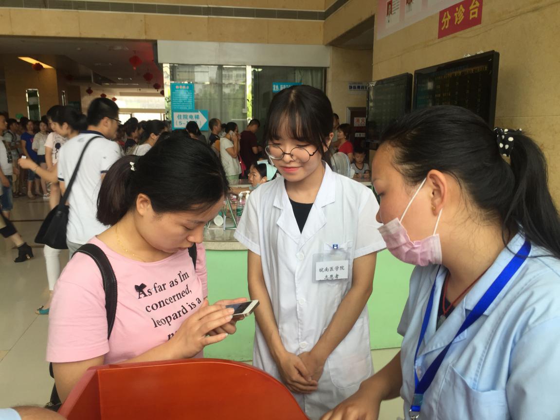 为响应国家卫计委、国家发改委等六部门关于《关于加强儿童医疗卫生服务改革与发展的意见》号召,7月11日至15日,合肥分队走进安徽省立儿童医院开展爱心活动。7月11日,志愿者们到达目的地,对医院的基本功能区分布以及工作要求进行初步了解。7月12日,志愿者身着白大褂按照事先分配好的小组,在各楼层进行导诊、指路以及为患儿家属答疑解惑。志愿者们的热心、耐心、爱心受到患者及医护人员的一致好评。7月13日至14日,志愿者们带着游戏工具、精彩表演分批进入骨科住院部,与患儿互动交流。7月15日,志愿者们协助医护人员,对就诊患儿及其家属进行问卷调查,搭起医患之间的连心桥。