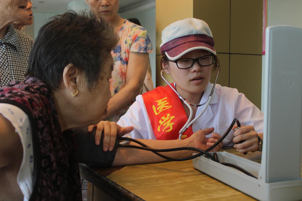 7月13日,芜湖分队走进鲁港社区福寿园老年公寓,开展“陪伴夕阳”活动。志愿者们为公寓内的老人测量血压,并利用课堂所学知识为老人们讲解常见疾病的预防知识。在服务中,同学们发挥自己的专业优势,将医学知识运用到志愿活动中。此外,志愿者还为老人们带去精心排练的乐曲演奏、书法朗诵、黄梅戏等节目,丰富了老年人的生活,使他们感受到温暖,也给彼此留下了美好的回忆。