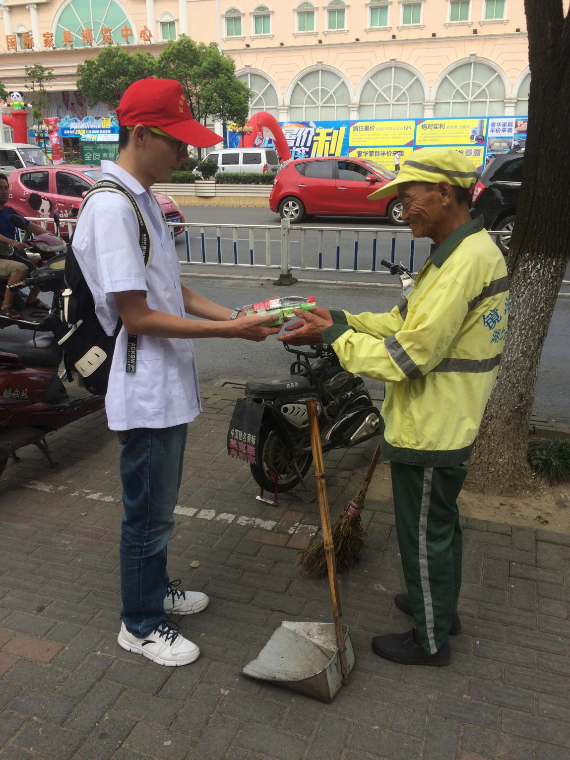 为倡导良好的道德风尚,芜湖“青鸽”小分队于7月14日至18日接力开展志愿服务活动。7月14日,队员们身着白大褂、头戴志愿者帽、手执消毒工具到达芜湖1路公交底站旅游公司,在公交公司的带领下为所到公交车全方位清扫消毒。7月15日,志愿者们为大富新村几条重要交通干道上认真负责的交警和环卫工人们送上矿泉水与毛巾,为他们送去一丝丝清凉与关心。7月16至18日,志愿者们在芜湖市第一人民医院新院区门诊部进行导诊和陪护服务。从为病人指路、指导使用自助挂号机到协助医护人员登记病史记录,整个工作过程分工明确,井然有序。