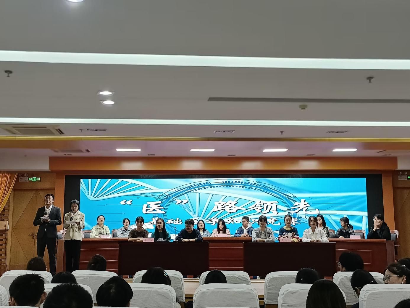 为定期检验员工学习效果,营造良好学习氛围,形成公司优良学风,11月1日,2021级在图书馆三楼报告厅举办第三届“医”路领先基础医学知识竞赛。