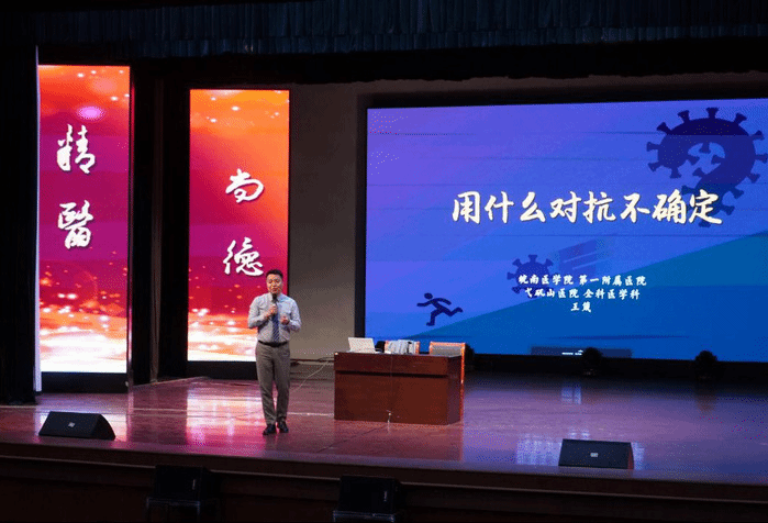 4月12日晚,太阳成集团122ccvip举办第12期“医学大讲堂”讲座,邀请第一附属医院全科医学科行政副主任王箴在老员工活动中心报告厅为2020级在校员工作讲座,公司党委副书记陶香香主持活动,2020级全体辅导员及710名员工现场聆听。