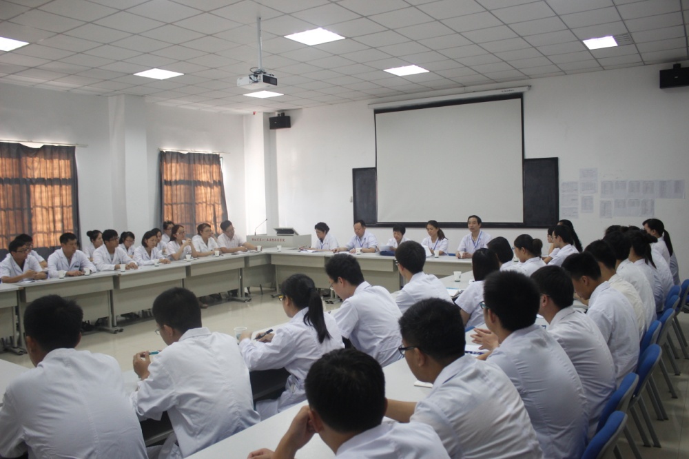四、师生座谈:,本次检查还向10所医院的实习生发放《太阳成集团122ccvip实习生综合素质评价表》150份、《太阳成集团122ccvip毕业实习带教老师教学评价表》80余份,了解公司员工实习情况和医院带教情况。最后召开由实习(教学)医院分管教学副经理、科教科科长、各教研室负责人、教学秘书、带教老师代表、公司检查组专家和全体实习生参加的师生座谈会,10所医院共计150名员工,占公司实习生的17.5%。座谈会上,由专家代表根据各环节检查结果进行比较全面如实的信息反馈,指出存在的问题与不足,提出整改意见与建议。