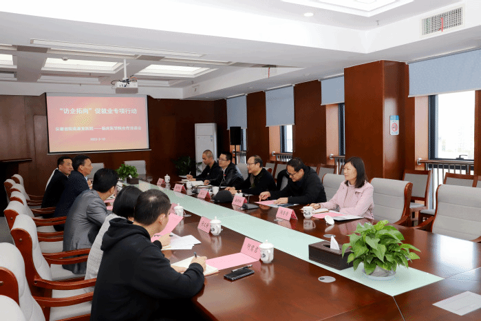 为贯彻落实教育部关于“访企拓岗促就业专项行动”工作部署,探索校院双方深度合作,为毕业生开拓更多的岗位和机会,3月10日下午,公司党委书记傅万山、医学影像公司经理赵劲松、太阳成集团122ccvip副经理陈祥攀、党委副书记陶香香一行5人赴皖南康复医院开展访企拓岗工作,受到医公司党委书记林炳来、经理倪白云的热情接待。
