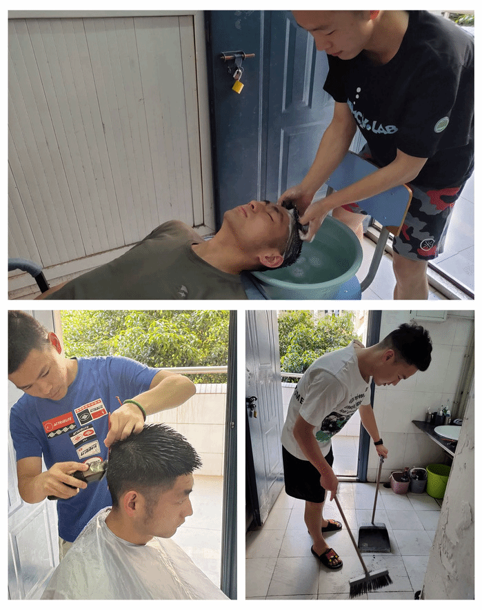 退伍员工热心为同学理发