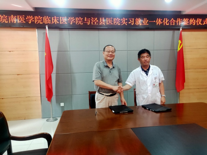 傅万山一行还在医院领导的陪同下,对医院教研室、示教室、临床技能中心、员工生活设施等进行了实地考察,现场签订了实习就业一体化合作协议。