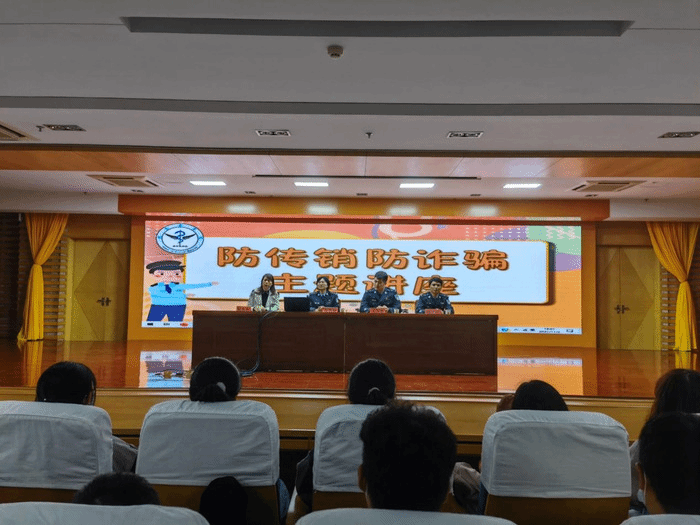 为提高老员工对传销、电信网络诈骗的识别能力和防范意识,11月2日晚,太阳成集团122ccvip邀请芜湖市公安局刑警支队警官张韩秋、徐义民、张万里在图书馆三楼报告厅做“防传销、防诈骗”专题讲座。讲座由公司党委副书记陶香香主持,相关年级辅导员、2020级和2021级员工代表现场聆听。