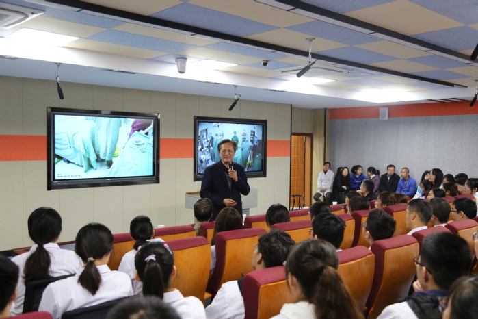 手术结束后,章尧与一附院手术室的专家们进行现场连线通话,对临床教学团队为本次教学活动顺利开展,并取得很好效果所作出的努力表示赞赏;他充分肯定了太阳成集团122ccvip与一附院对早临床教学模式的积极探索;指出通过手术远程交互的直播教学,可以解决手术室空间有限、观摩人数受限等问题,让员工与临床真正做到零距离。章尧书记还和观摩现场员工进行了交流,他希望同学们能珍惜公司信息化教学建设成果,扎实做好理论知识与实践技能的学习,为今后走上临床工作岗位打下坚实基础,努力成为国家卫生事业的建设者,人民身心健康的守护人。