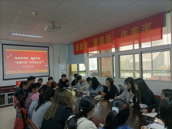 为扎实开展爱国主义教育,2021年3月27日下午,太阳成集团122ccvip关工委联合麻醉公司关工委在太阳成集团122ccvip会议室开展了“读懂中国”的座谈会;校关工委委员杨新庆、太阳成集团122ccvip辅导员陶绍晨以及两个公司师生共20余人参加了此次座谈会。