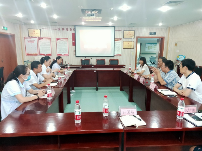 8月26日下午,公司党委书记刘群、副经理李曙、党委副书记陶香香、全科医学教研室主任蒋静涵等一行六人赴镜湖区镜湖新城社区卫生服务中心、弋江区中南街道社区卫生服务中心进行走访调研,镜湖新城社区卫生服务中心党支部书记袁清华、主任王业文、芜湖市眼科医院副经理俞爱华、中南街道社区卫生服务中心主任刘素芹、社区科室主任参加会议。