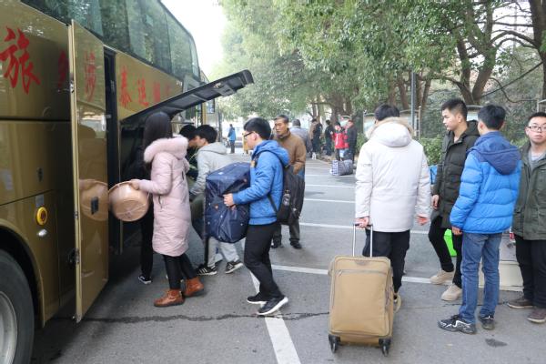 12月18日清晨6点开始,满载着师生的25辆大巴分批次奔赴36家实习单位,现场秩序井然有序,师生互话别离。公司领导、相关工作人员在实习送点现场协调整个实习下点过程,秩序井然。
