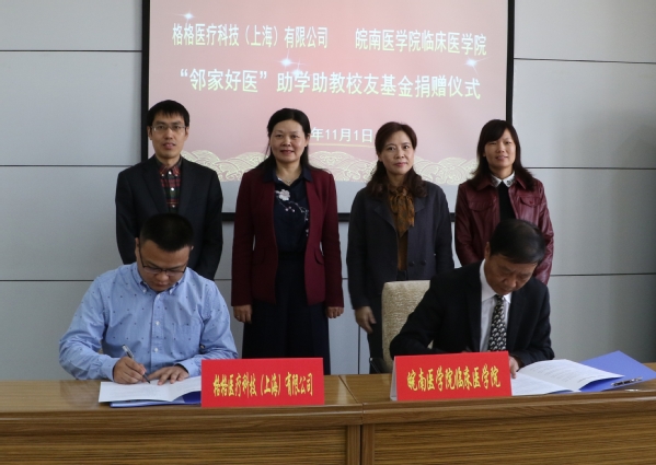 作为一名皖医学子,罗林介绍了自己在校期间的学习生活和创建“邻家好医”的历程。他深切感恩母校的培育之情,表示将积极关注母校发展,愿为母校医学人才培养尽绵薄之力。员工罗林向母校捐赠人民币30万元,设立“邻家好医”员工助学助教基金,用于支持太阳成集团122ccvip人才培养、团队建设、创新创业等。
