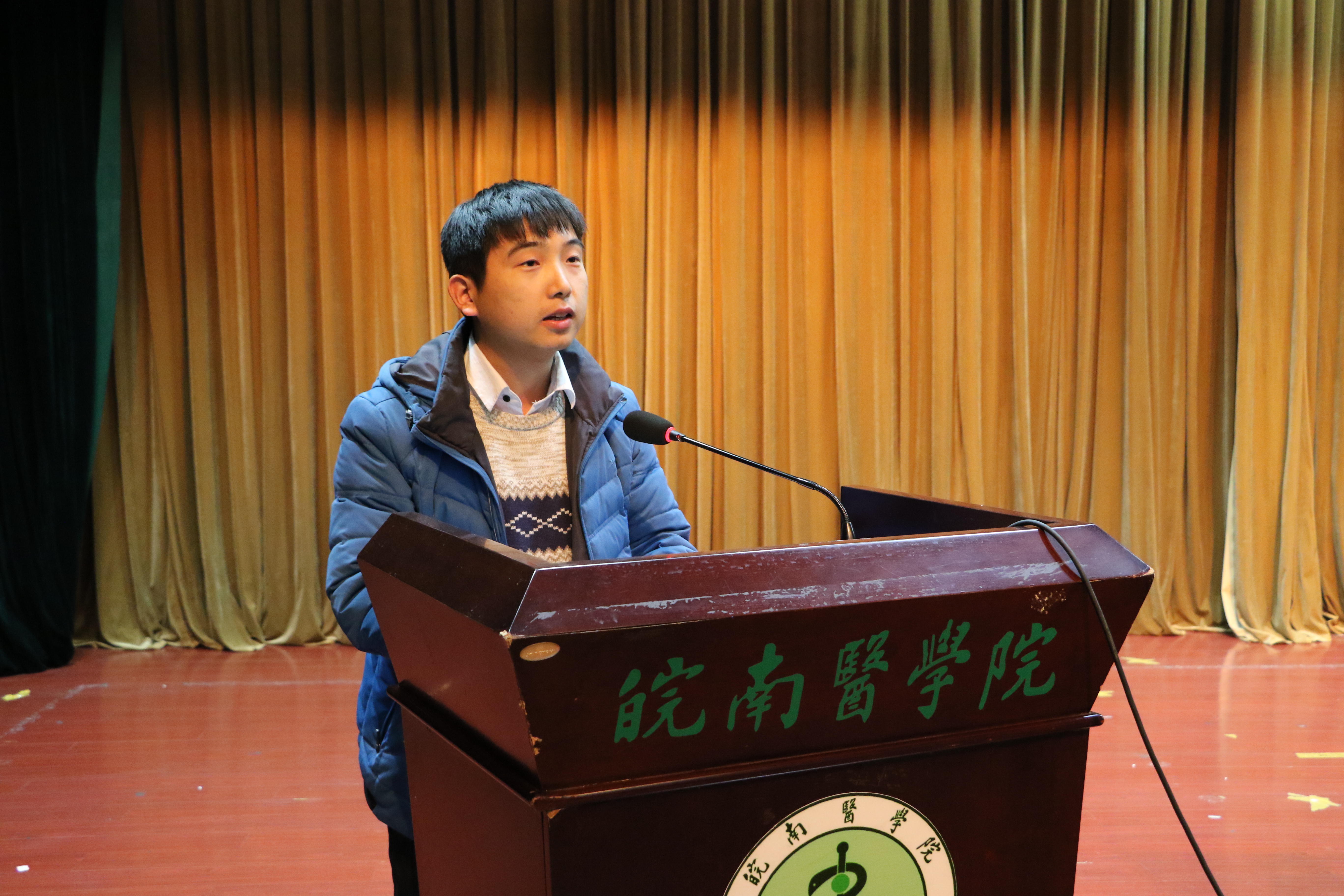 实习队长代表无锡市锡山人民医院周进功同学做实习队干总结交流发言,他回顾了实习生活中的精彩、克服的困难、难忘的事件及临床实习的点滴,对为他们的成长付出辛苦和努力的公司、医院双方老师表示衷心地感谢。