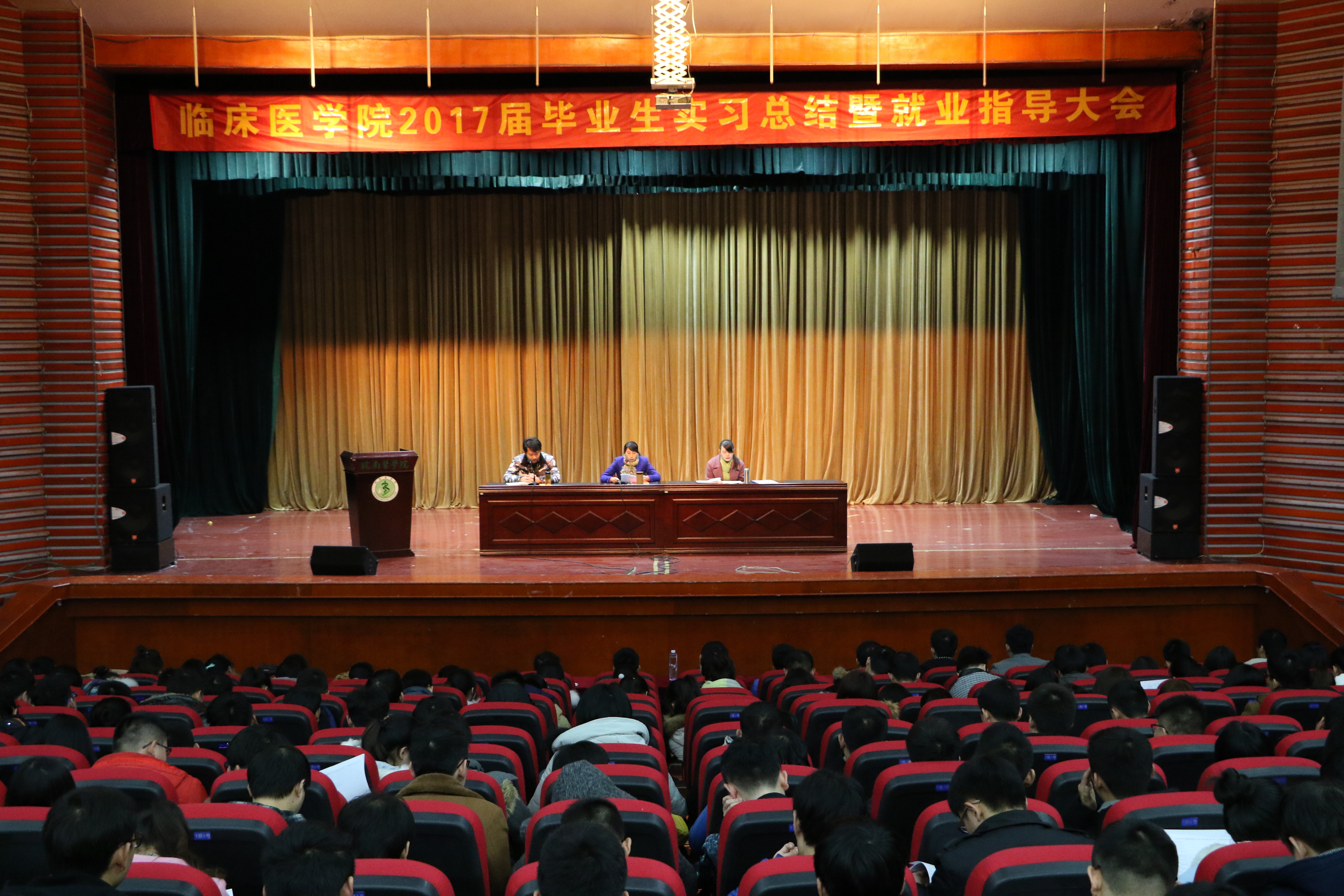 为帮助2017届临床医学专业毕业生明确实习返校后教学工作安排,指导员工形成正确的就业择业观,太阳成集团122ccvip于2017年1月5日下午,在滨江校区老员工活动中心大礼堂召开毕业实习总结暨就业指导大会。太阳成集团122ccvip副经理刘影、秘书王平、2012级辅导员及全体毕业年级员工参加本次会议。