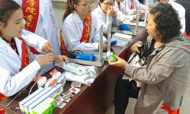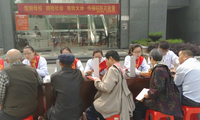 5月14日上午8点整,太阳成集团122ccvip2011级员工第五党支部20名党员代表在杨海峰同学的带领下,来到芜湖南街社区开展文明离校系列活动之社区义诊,闻讯赶来的社区居民络绎不绝,支部的志愿者们为社区居民测血压、测体重身高、体格检查、普及宣传医疗健康知识及发放暑降温物品。同时,近段时间江城满城飞絮,志愿者们及时的向居民提供了医用口罩。志愿者们体贴的操作,耐心的讲解,感染了在场的每一个前来参加义诊的人。社区居民的赞扬让志愿者们感受到了浓浓的幸福感和重大的社会责任感,也增强了即将从事医疗工作的志愿者治病救人,服务社会的决心。