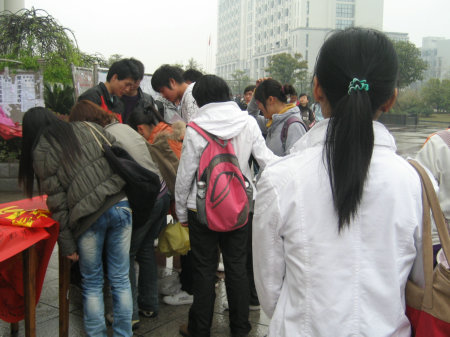 上午10时,同学们早早来到1号食堂门前,做好了一切准备工作。天空虽然飘着小雨,但大家的热情不减。大家向过往的同学们宣传相关的信息,邀请同学们参与为灾区祈祷祝福的活动,同学们纷纷在横幅上签下自己的名字。活动很顺利,氛围很浓烈,一直持续到中午12点多。