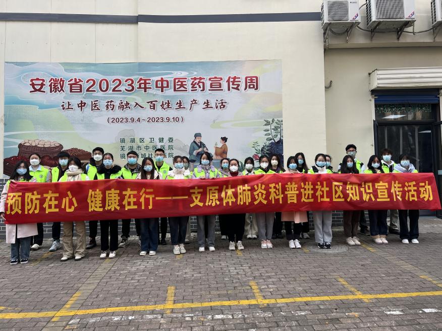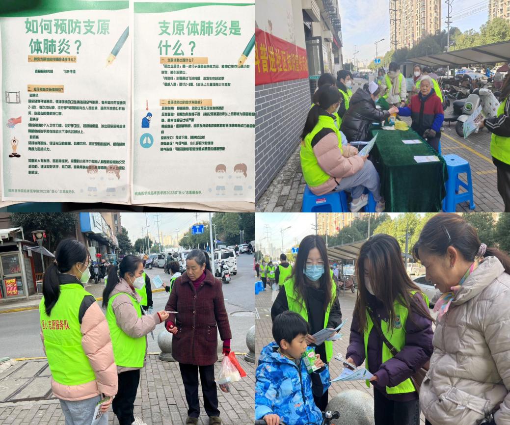 为进一步增强社区居民对支原体肺炎的了解,提高居民疾病预防意识,提升居民健康生活水平,12月2日,2022级“医心”志愿服务队前往芜湖市镜湖区镜湖新城社区卫生服务中心,开展以“预防在心 健康在行”为主题的支原体肺炎科普进社区知识宣传活动。