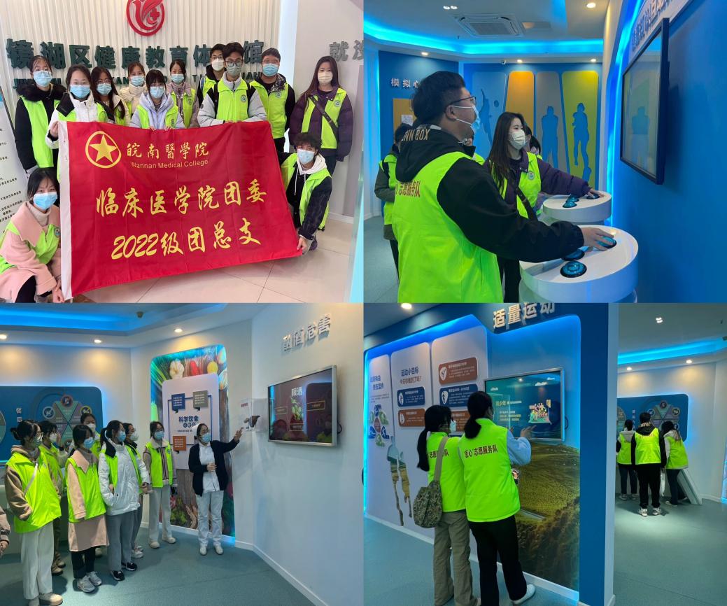 活动伊始,志愿服务队成员在社区工作人员的带领下,参观了镜湖区健康教育体验馆。参观过程中,同学们了解到,镜湖区健康教育体验馆是集高科技、智能化、互动性为一体,以多媒体展示、互动游戏、知识问答等形式向社会普及健康知识,倡导健康新观念,提高全民健康素养的体验馆项目。在体验馆讲解员的带领下,同学们依次参观了戒烟限酒区、运动健康区、心理健康区、知识竞答区等,各个专区的展览以互动、体验的方式,切实融入了健康生活的理念、知识和实践,以引导大家重视身心健康。