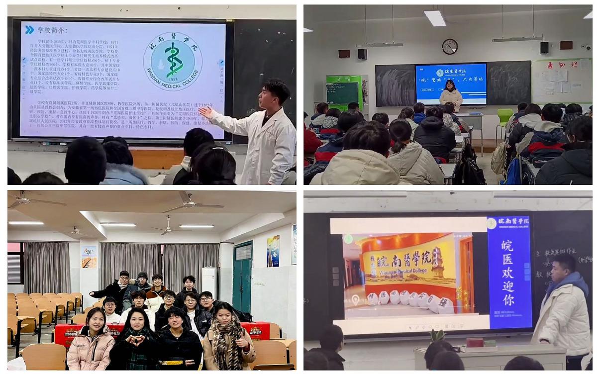 回访母校,争做皖医“代言人”。“春芽”志愿服务队合肥、芜湖、巢湖、舒城小分队成员回访高中,争做皖医“代言人”。他们感恩母校以及恩师的培养教育,并通过集中宣讲、现场答疑解惑等方式,介绍皖医的基本情况以及特色,激发学弟学妹们对医学相关学科的兴趣和向往,鼓励学弟学妹们报考皖医,同时展现了临床学子昂扬向上的精神风貌。